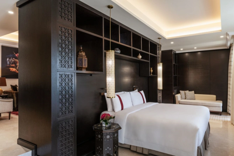 Nestled on the Red Sea coastline in Aqaba, Al Manara Hotel is one of Jordan’s most prestigious luxury resorts under The Luxury Collection. The project required a complete, high-end hotel interior solution, blending refined Arabian elegance with modern comfort and durable hospitality-grade craftsmanship.